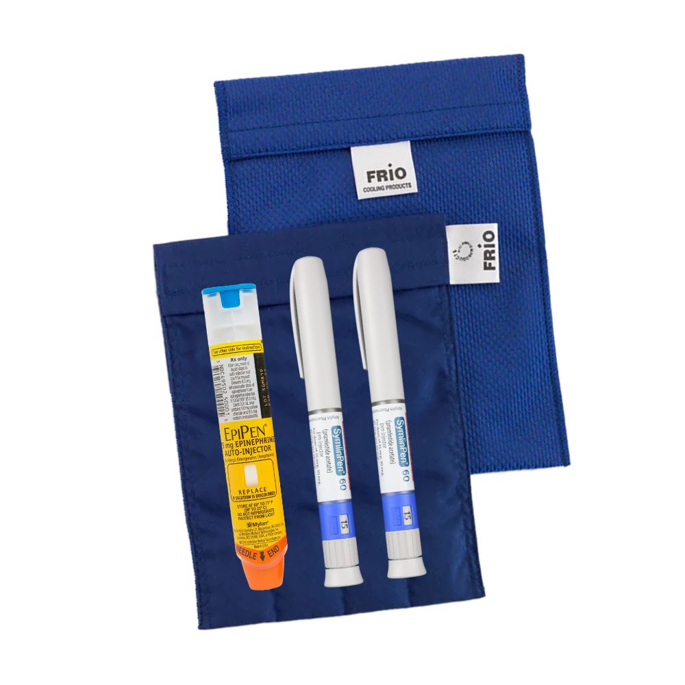 Whether you are insulin dependent or have to carry another type of temperature-sensitive medication, the FRIO Cooling Case is your answer. The FRIO is a reusable evaporative cooler. Its cooling properties come from the evaporation of water, not an ice pack or anything that needs refrigeration. Once activated, by soaking the case in water for 5-10 minutes, it keeps medications within the safe range of 64.4-78.8°F (18-26°C) for a minimum of 45 hours, even in a constant environmental temperature of 100°F. For longer periods, simply re-soak in water and you’re good for another 45 hours! The FRIO offers better convenience than an ice pack and cooler with its size and design. *The FRIO is not, and is not intended to be, a refrigerator substitute.
