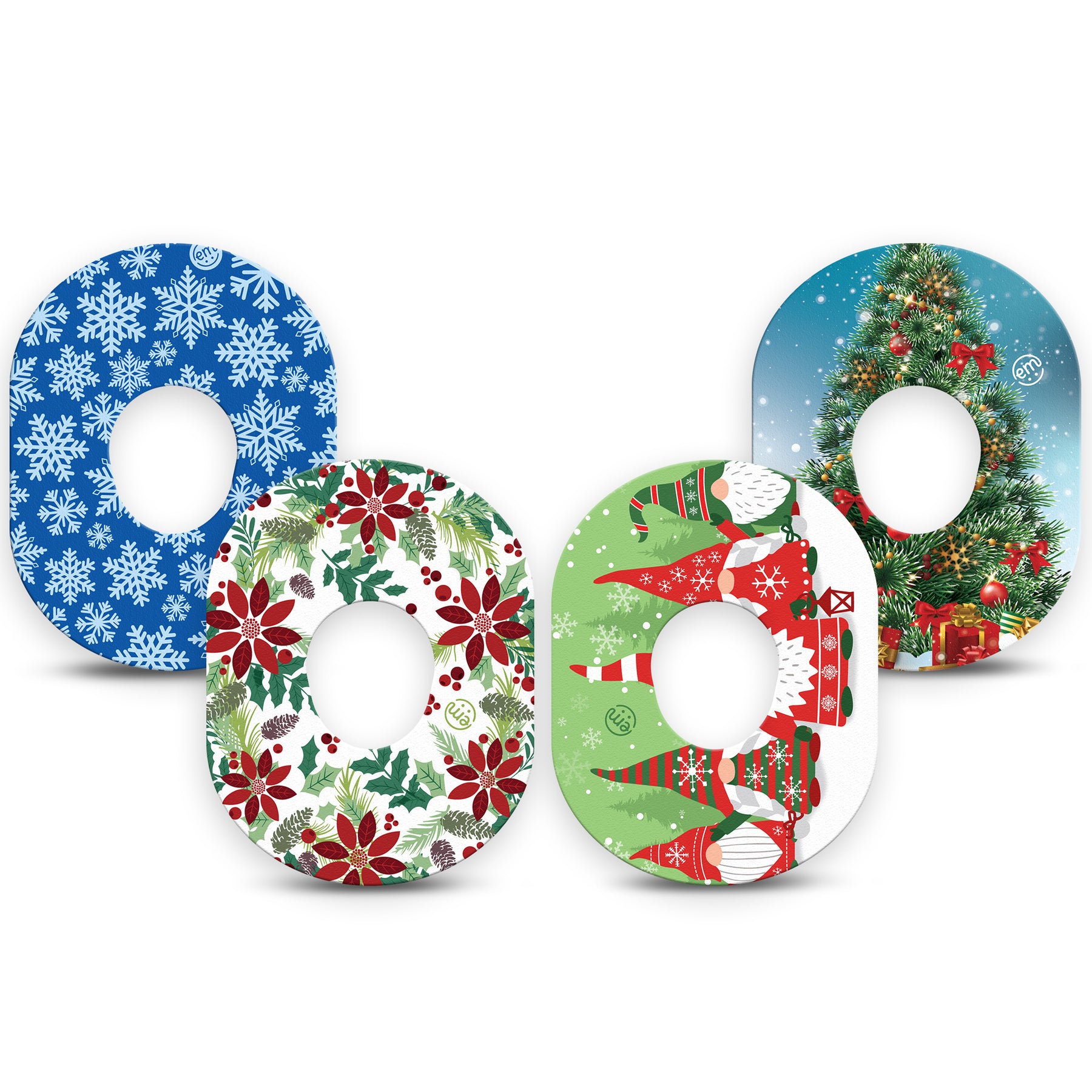 Pack contains one of each of Expression Med patch designs: Snowflake, Christmas Wreath, Holiday Gnomies and Oh, Christmas Tree